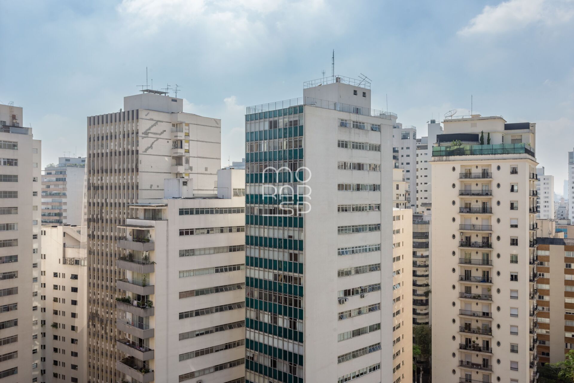 Num ponto estratégico bem da divisa dos bairros de Higienópolis e Santa Cecília, com fácil acesso para tudo, inclusive o shopping que se localiza a duas quadras, quanto para se dirigir para as principais avenidas que o levam às outras regiões da cidade, é que se localiza esse incrível edifício modernista da década de 70, projetado por David Libeskind e onde está essa joia rara de 234m2.