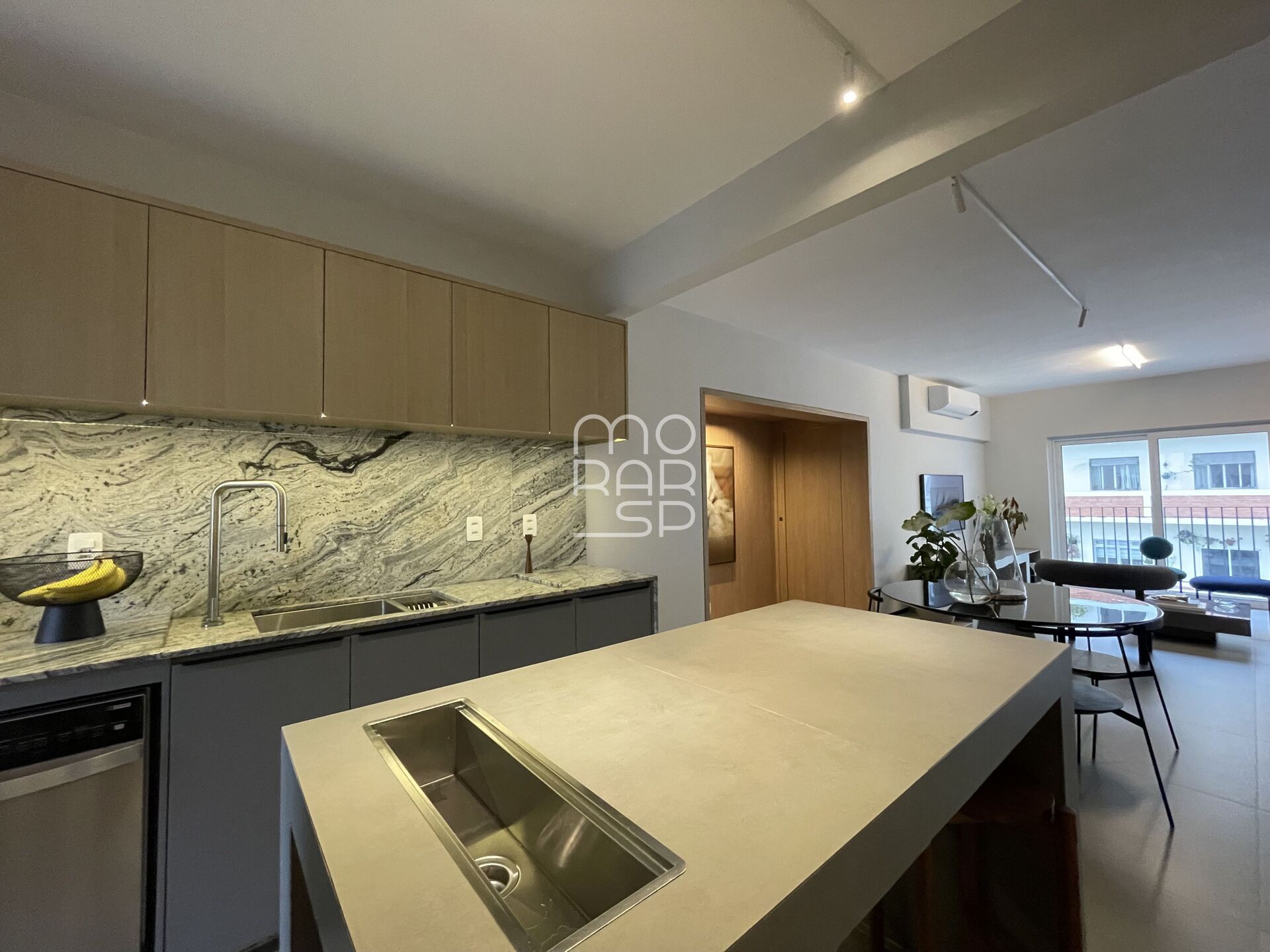 Apartamento totalmente reformado, mobiliado e decorado para mudar imediatamente, localizado na parte plana do Jardins. São 94 m² muito bem distribuídos, com 2 suítes, lavabo e 1 vaga. O projeto valoriza iluminação, amplitude e conforto.