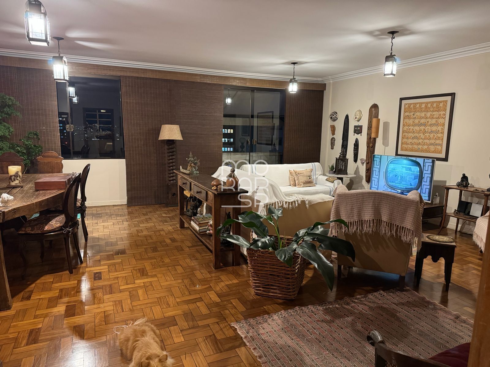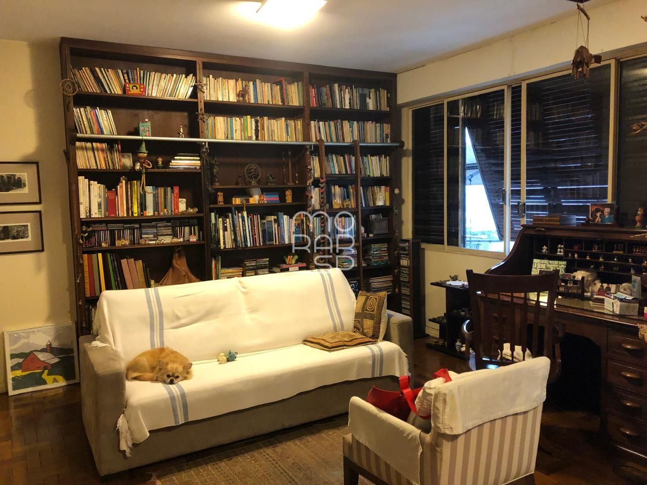 O apartamento foi cuidadosamente reformado, retomando sua planta original e utilizando materiais de alto padrão em todas as etapas, desde as instalações elétricas e hidráulicas até os acabamentos. Conta com três dormitórios, sendo um deles integrado ao living como escritório duplo (reversível) e outro com closet. O piso em tacos de ipê nobre foi preservado, assim como portas de madeira, ferragens e armários robustos em todos os ambientes. A cozinha, área de serviço ampla, quarto e banheiro de serviço completam a área funcional, além de um corredor com armários que funciona como despensa e apoio.