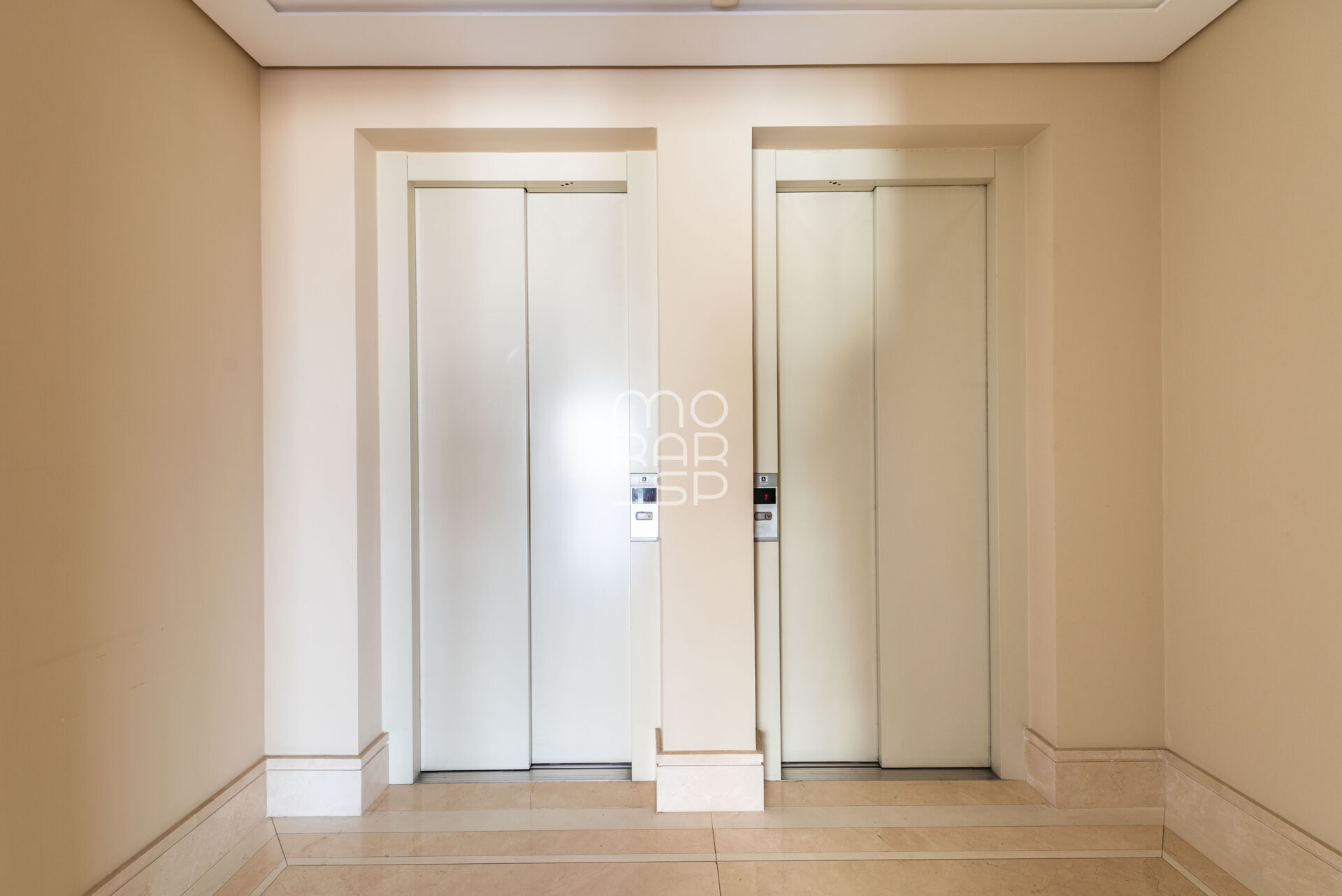 O imóvel dispõe de 5 vagas de garagem e o edifício contempla lazer completo com piscina aquecida coberta, sala de pilates, academia, quadra e salão de festas, além de segurança reforçada.