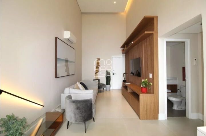O living integrado valoriza a amplitude e a iluminação, com marcenaria sob medida e ambientes bem definidos. A cozinha, totalmente equipada, acompanha a proposta prática e funcional do imóvel.