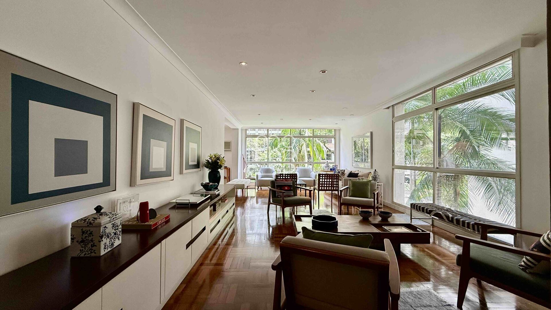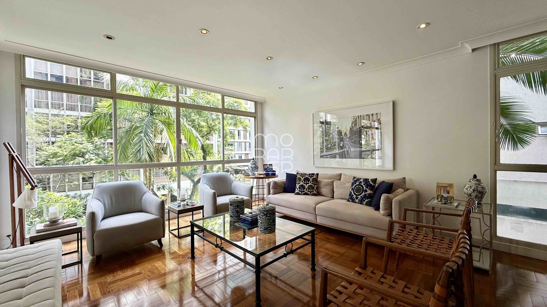 Apartamento de 253m2 em Higienópolis com living para 4 ambientes, cozinha semi-integrada, 4 dormitórios sendo 1 suíte master com closet e 2 vagas.