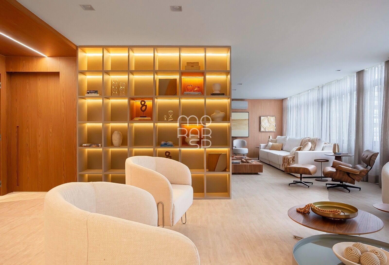 A planta quadrada de 270m2 foi inteligentemente pensada para oferecer integração e funcionalidade. O living acomoda confortavelmente 3 ambientes e é banhado por luz natural, com janelas amplas e acesso a uma varanda, que se destaca como diferencial na região.