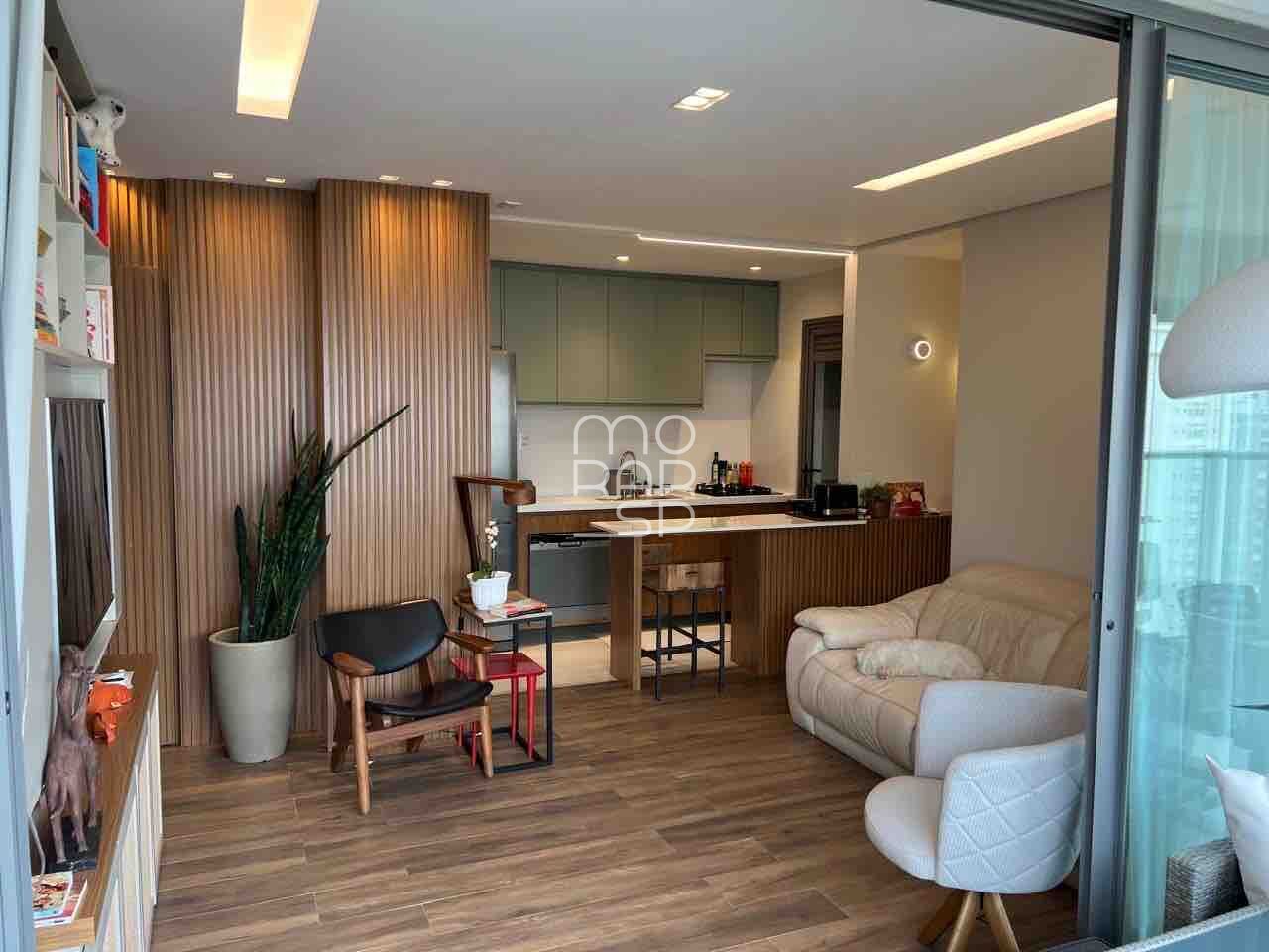 Apartamento de 74m2 em Moema, com cozinha e sacada integradas ao living, 2 suítes, 1 vaga e lazer no rooftop.