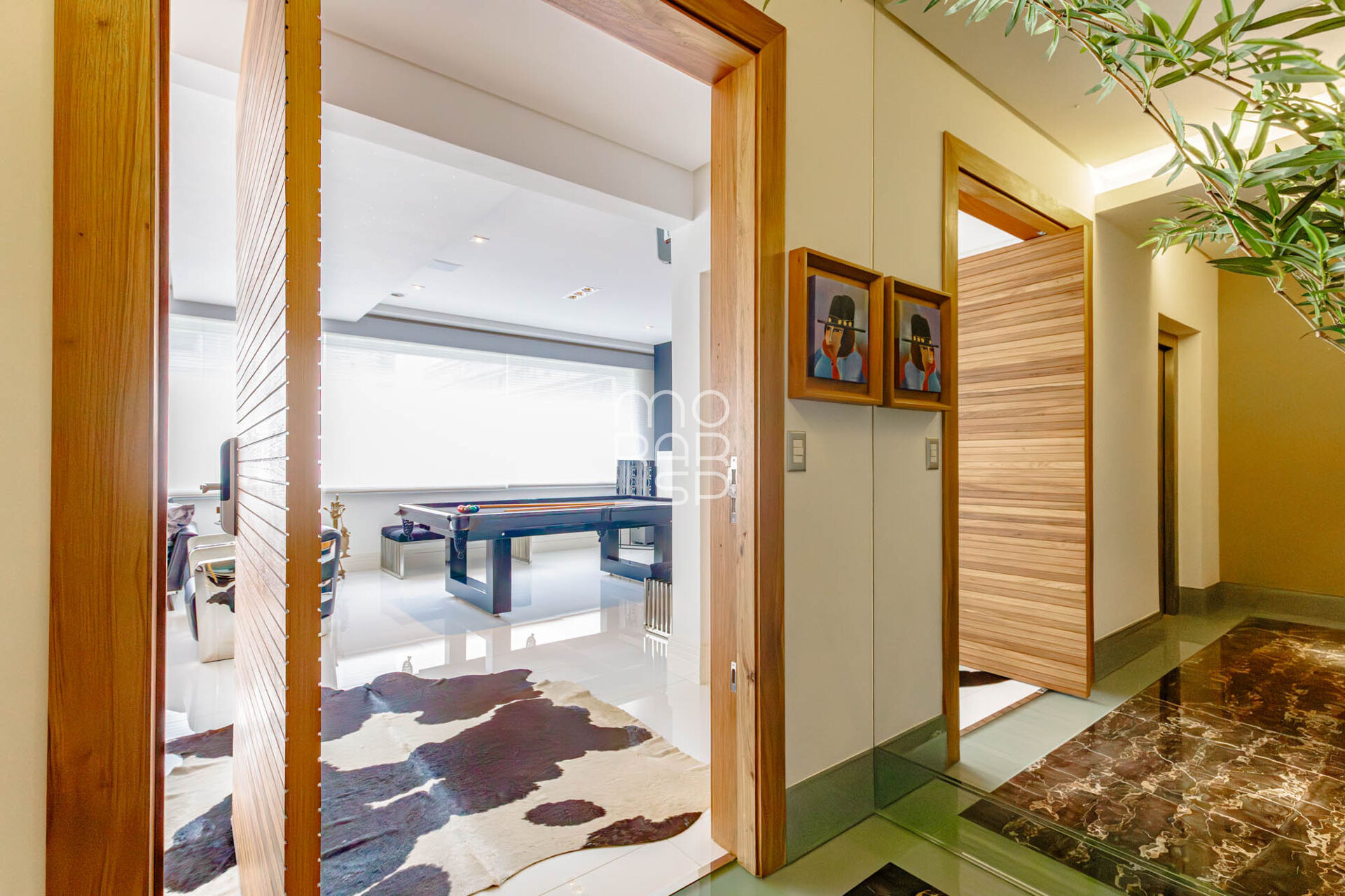 O living é composto por ambientes de convivência, como salas de estar, bar, sala de jogos, sala de lareira, sala de jantar com cozinha gourmet integrada.