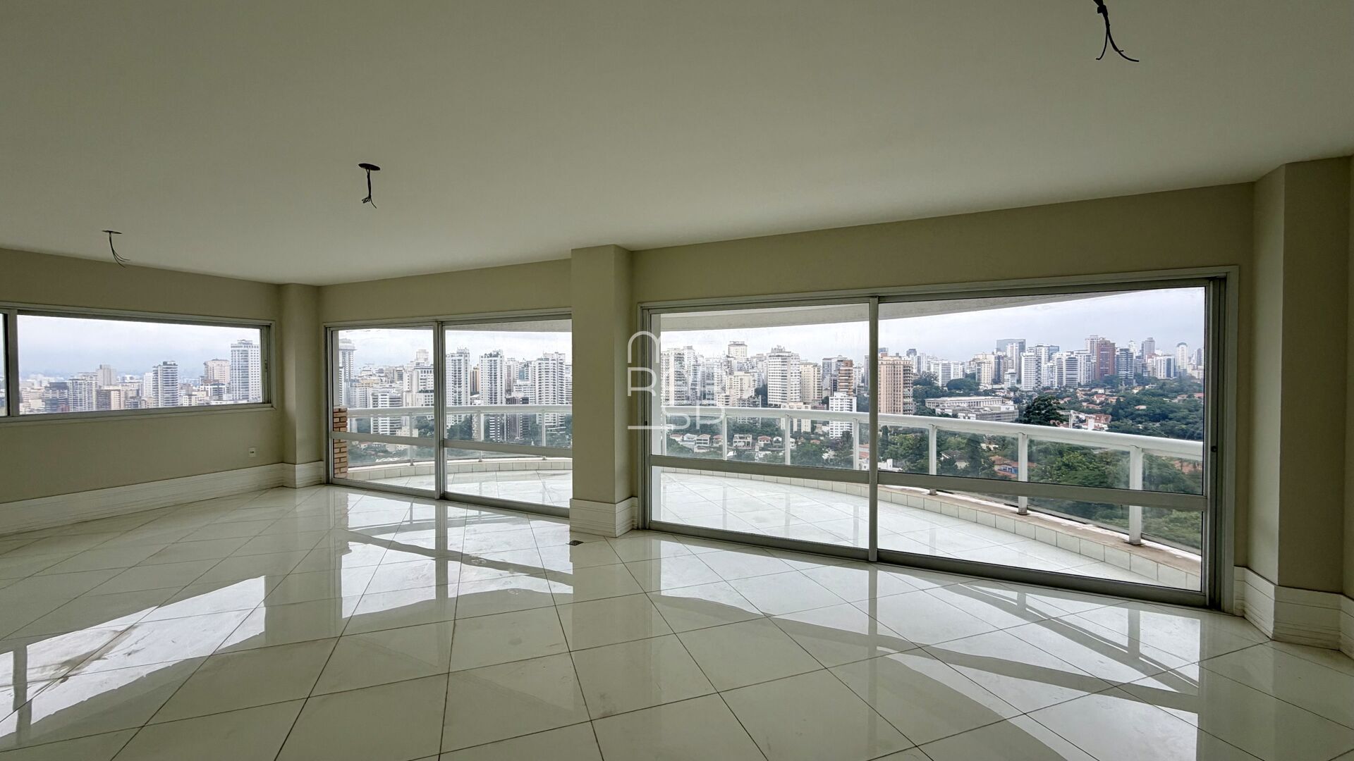 Cobertura duplex com 416 m² de área privativa, nunca habitada, com planta generosa, excelente luminosidade e amplos espaços de convivência.
